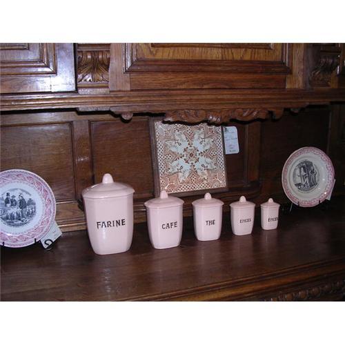 Series of 5 pots a epice/ spice jars in light pink.Imported from the sarthe region of France