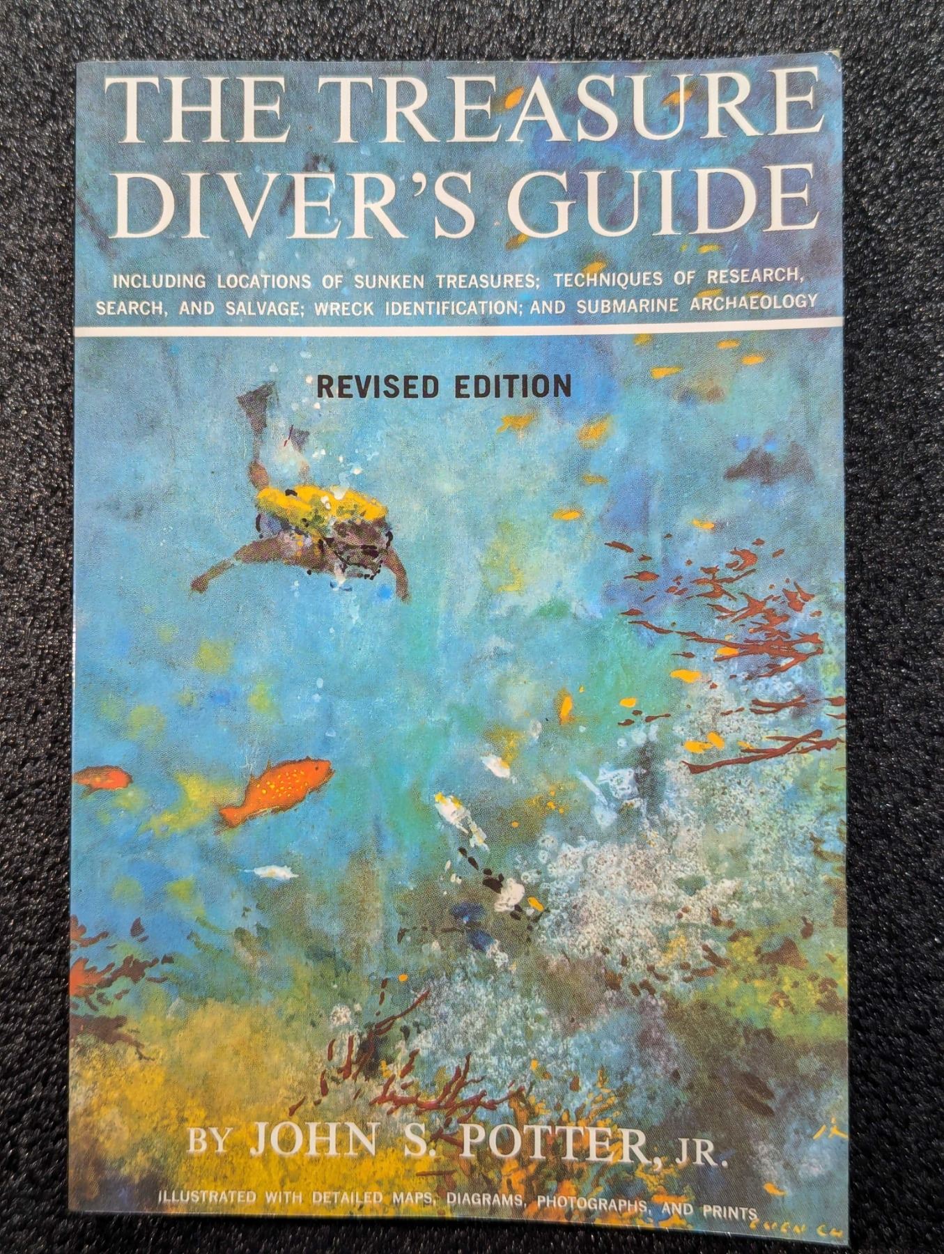 Potter, John S., Jr. THE TREASURE DIVER'S GUIDE. Florida Classics Library, Port Salerno. 1988. 8vo. xxvi, (2), 567, (3) pages. original pictorial card covers. Revised, reprint edition. Maps. Bibliography. Sunken Treasure Index. B&w photos, diagrams and illustrations throughout. English text. The David Baker Library. Fine. This book begins by discussing the Spanish galleons carrying gold and silver from the New World to Spain, tells the stories of wrecks already salvaged (as of 1960), discusses wreck identification, and overviews underwater archaeology (which was at that time in a primitive state). However, most of the book comprises the first comprehensive listing of treasure wrecks (but over the past 40 years some of the data has been shown to be erroneous). Lot weight: 1 lbs 8oz. Subject(s): Sunken Treasure.