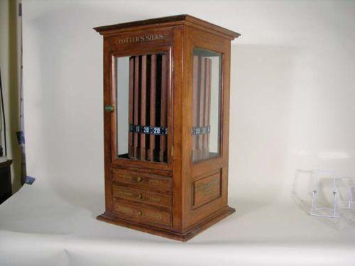 "Potter's Silk" revolving silk cabinet - Winstead Silk Co., 18.5" sq. x 32" h, Chicago, Ill. Patents 1911-1913-1914. Ex. cond.