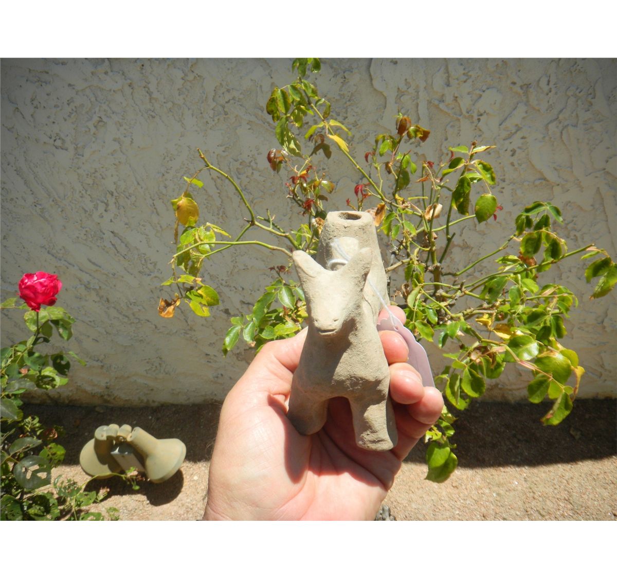 Spanish colonial Effigy Candle holder shaped like a dog. Six by four by two inches. 1600's Fine Condition