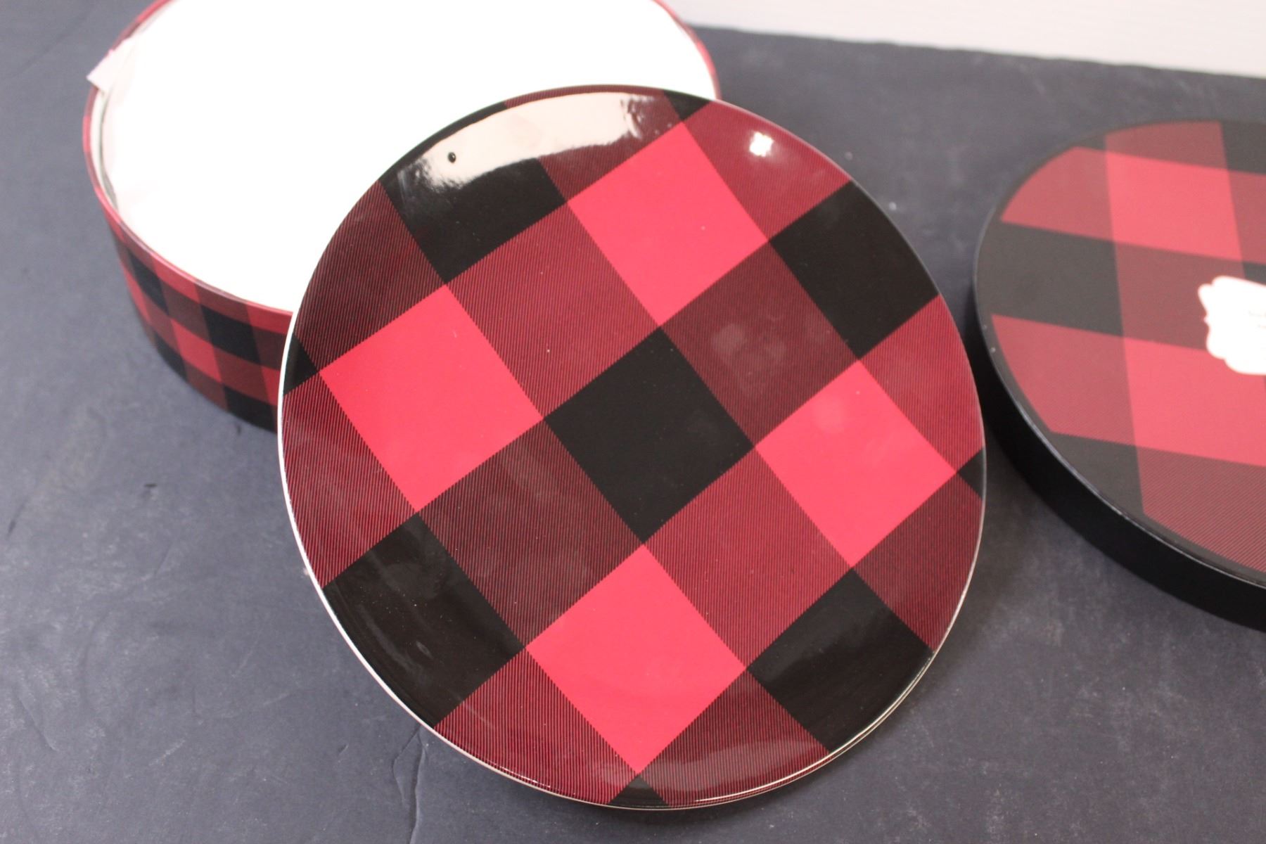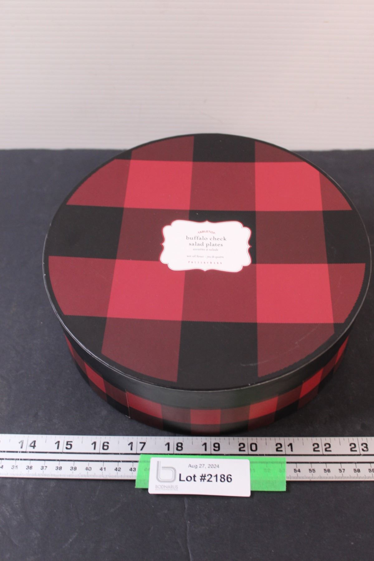 Pottery Barn Buffalo Plaid 8" Plates in Box - Appears New in Box