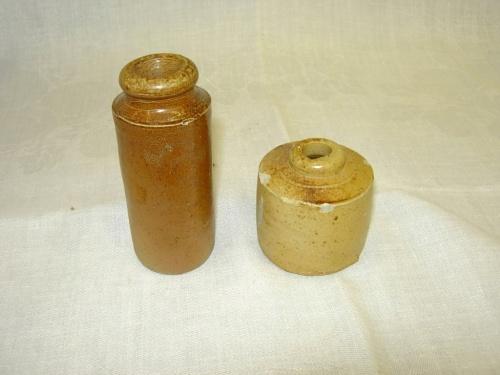 Pair of early pottery ink wells *noting: chips, measures 3 3/4" h and 2 1/4" h