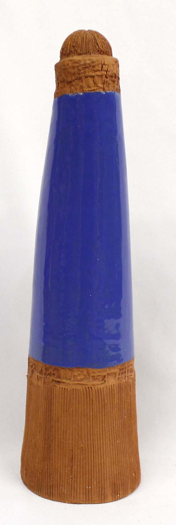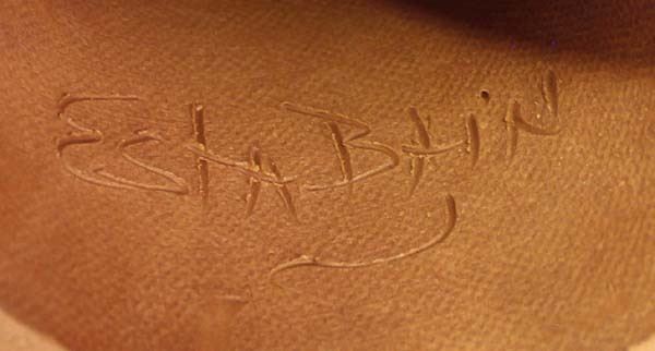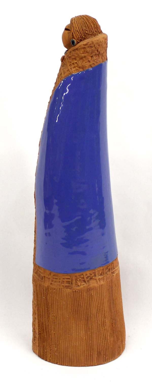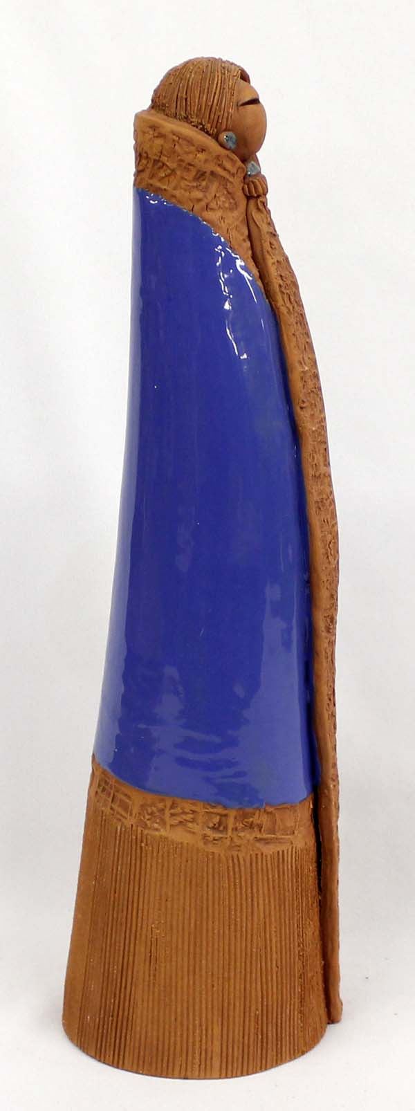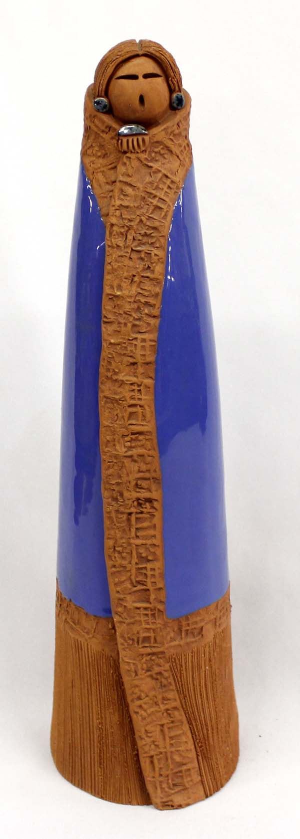 Pottery Sculpture by Esta Bain, measures 14.5''H x 4''D and is signed by the artist, FYI: Esta Bain has delighted people of all ages throughout the Southwest with her wonderful ceramic sculptures. The majority of figures are blanketed Indian women holding a child. The carved faces are serene and the total look of each piece is one of warmth, strength, and security. She was born in Portland, Oregon and lives and works in Albuquerque, NM