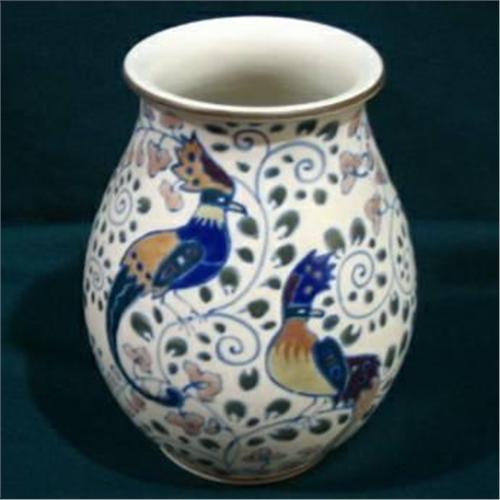 Pottery Vase made by Kenilworth Studios in 1910, 7",decorated with peacocks, the name of the pattern is Nippon.