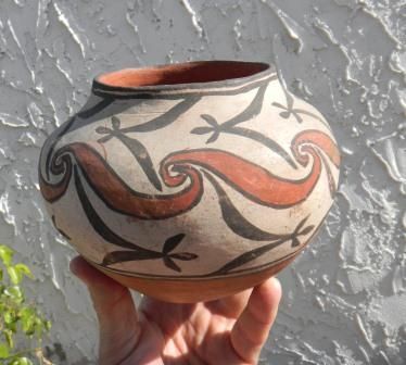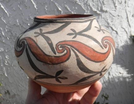 San Felipe olla, polychrome Black on Red Pottery Item Circa 1960. 6x7 inches. Shipping $12.50