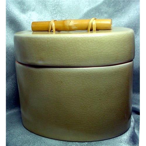 The crackle on this pottery container is beautiful. I don't know the age but it's a really nice box with bamboo handle. No cracks, chips or repairs. Thank you for looking! Support Our Troops..