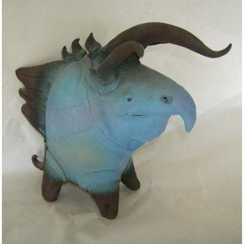 Pottery dinosaur sculpture, 9 1/2"tall, 10"l