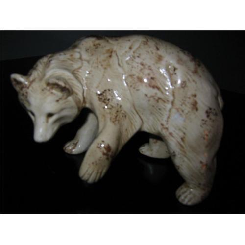 This 5.5 inch Beige and brown Bear is a creation of folk Artist Lisa V. in 1985. The signature is on the paw. The bear is in excellent condition, special glaze and slightly raised with magnificent detail. It is 3.5 inch by 5.5 inch and 5 inch in diameter. Collector's prize. Something to think about!