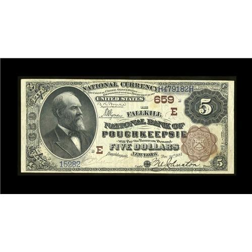 <B>Poughkeepsie, NY</B></I> - $5 1882 Brown Back Fr. 467 <B>The Fallkill NB</B></I> Ch. # (E)659<BR>This is a scarce type and denomination from this Dutchess County issuer, with this example only the third $5 Brown Back reported from here. Pleasing <B>Very Fine.</B></I>