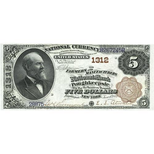 <B>Poughkeepsie, NY</B></I> - $5 1882 Brown Back Fr. 468 <B>The Farmers & Manufacturers NB</B></I> Ch. # 1312<BR>A lovely Brown Back with a great layout which is three folds from Gem. The incredible embossing on this piece makes it most unlikely it ever really circulated at all. <B>Choice Extremely Fine,</B></I> ex-our January, 1996 Orlando sale, where it realized $555 against our pre-sale estimate of $250-375.