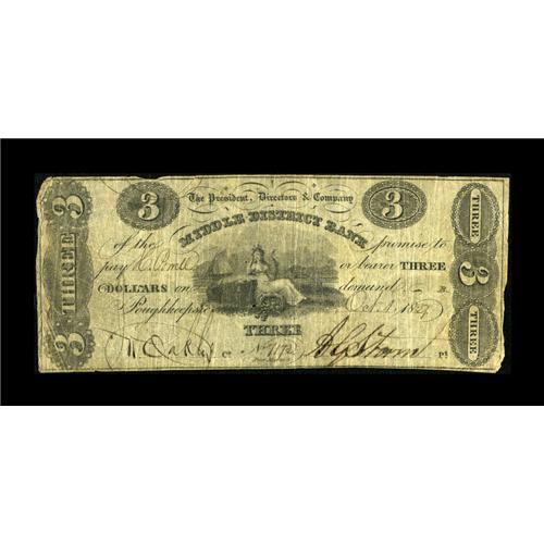 Poughkeepsie, NY- Middle District Bank $3 Oct. 1, 1827