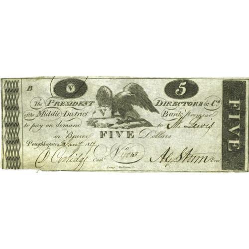 Poughkeepsie, NY- Middle District Bank $5 Jan. 5, 1819