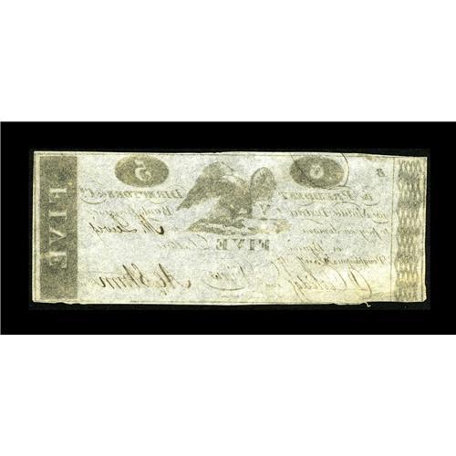 <B>Poughkeepsie, NY- Middle District Bank</B></I> $5 Jan. 5, 1819 C40<BR>Light handling is seen on this scarce counterfeit. <B>About Uncirculated.</B></I>