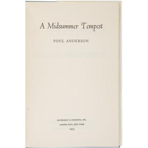 <B>Poul Anderson. </B></I><B><I>A Midsummer Tempest. </B></I></B></I> Garden City, New York: Doubleday & Company, Inc., 1974.<BR> <BR>First edition. Octavo. 207 pages. <BR><BR>Light blue cloth. Very good condition. <I>From the Robert and Diane Yaspan Collection.</B></I><BR><BR><b>Shipping:</b> Books & Catalogs (<a target="_blank" href="http://www.heritageauctions.com/common/shipping.php">view shipping information</a>)