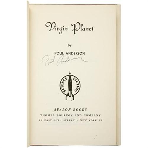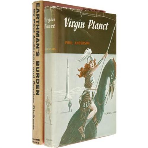<B>Poul Anderson Signed First Editions.</B></I> Includes the following:<BR><B><I>Virgin Planet.</B></I></B></I> (New York: Avalon Books, 1959), signed first edition, 224 pages, brown boards, 8vo, dust jacket. Condition (book/ dj): very good/ good.<BR><B><I>Earthman's Burden.</B></I></B></I> (New York: Gnome Press, 1957), signed first edition, 184 pages, light blue boards, 8vo, dust jacket. Condition (book/ dj): very good/ very good.<BR><BR><b>Shipping:</b> Books & Catalogs (<a target="_blank" href="http://www.heritageauctions.com/common/shipping.php">view shipping information</a>)