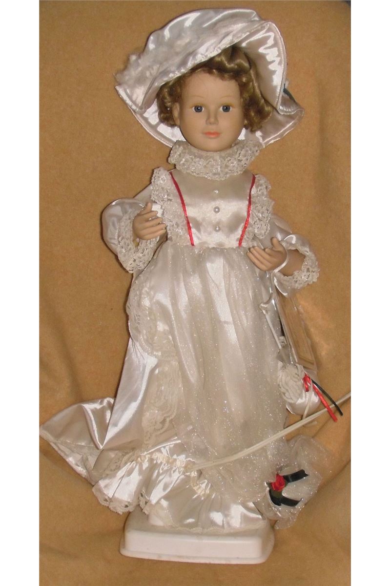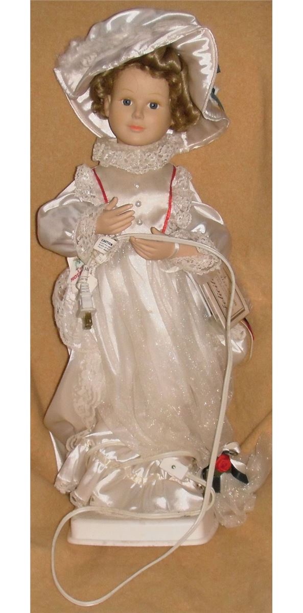 this about 24 inches high doll is with cord for since the head and arms move, it works nicely; great for your collection or to give;