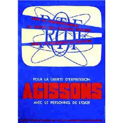 "Pour la liberté d'expressions, agissons avec le personnel de l'ORTF" Non au démantèlement au profit des sociétés privées - non à la main mise du pouvoir Presses Nouvelles Lyon Aff. N.E. B.E. B + 380/700 € 76.5 x 56 cm 2490/4590 FF 320/600 $ RADIO - MEDIAS