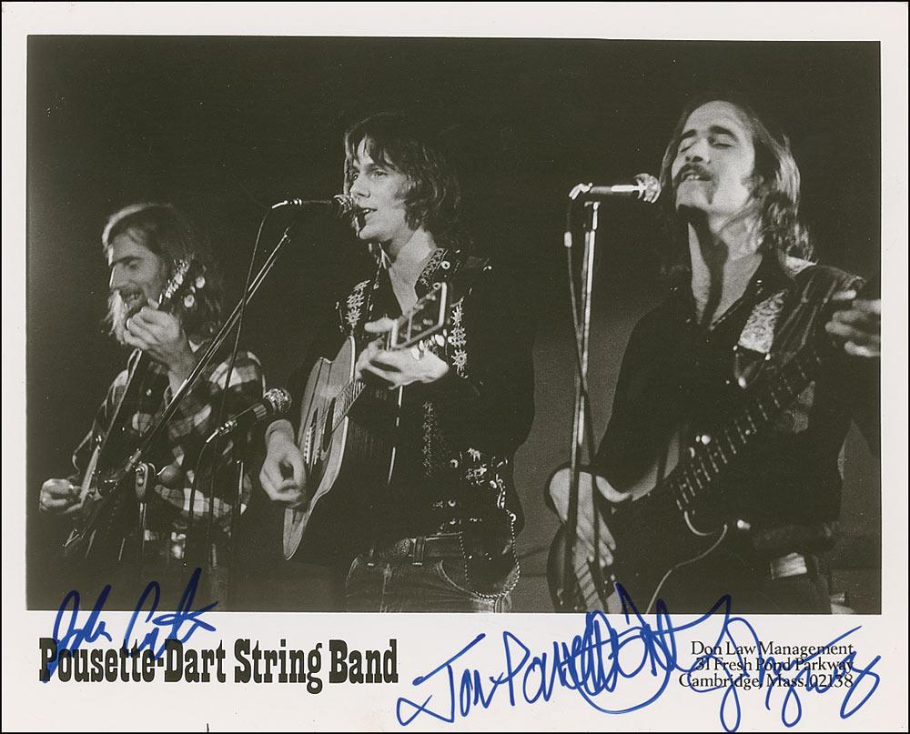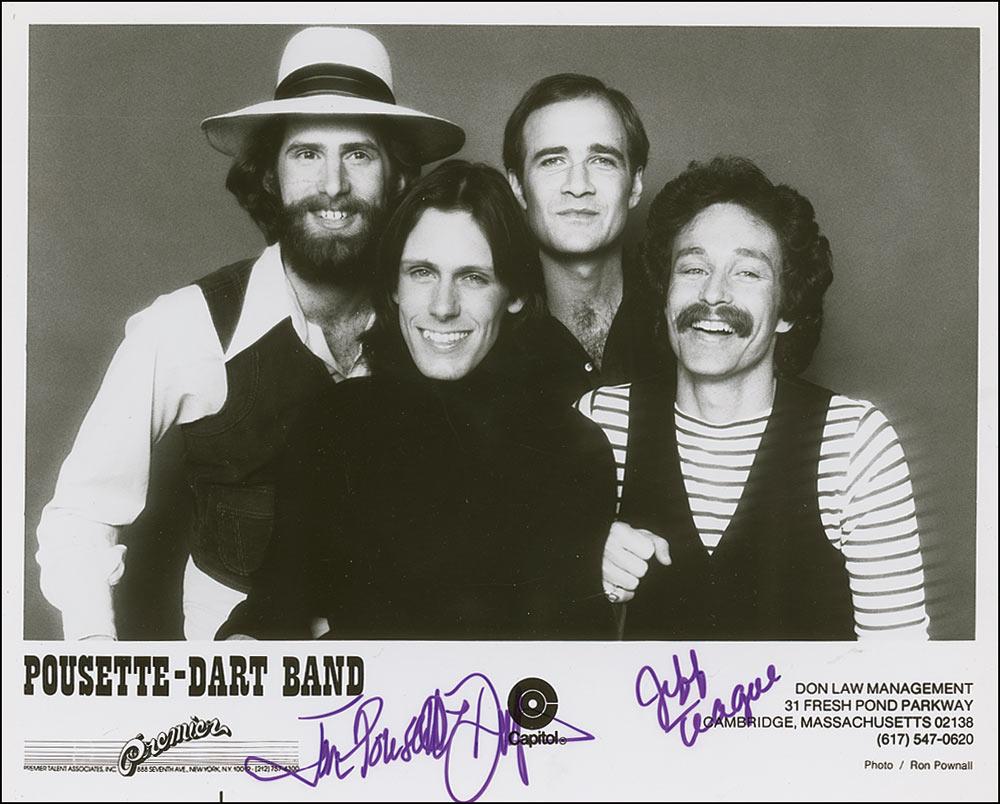 Two glossy 10 x 8 photos: one of the band performing, signed in blue felt tip by Jon Pousette-Dart, John Troy and John Curtis; and one publicity photo, signed in purple felt tip by Jon Pousette-Dart and Jeff Teague. In fine condition.