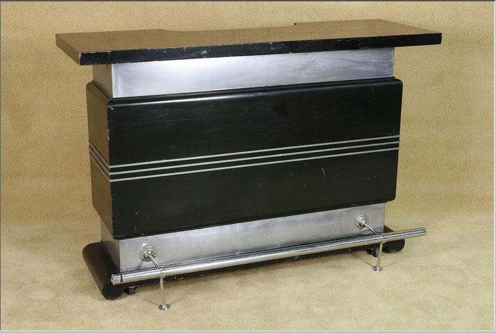 Black Lacquered Art Deco 1930's Streamline Styled Bar with Chrome Accents Used as a Movie Prop in the 2009 film "Powder Blue" starring Patrick Swayze. #2006576
