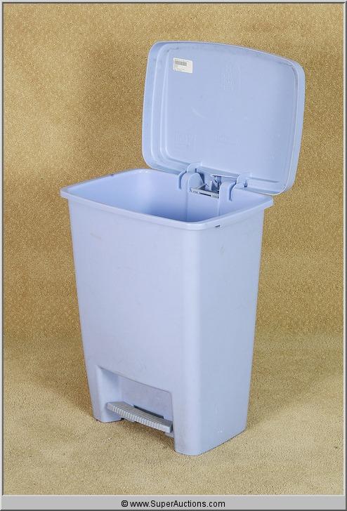 Common Man's Blue Plastic Trash Can Used as a Movie Prop in the 2009 film "Powder Blue" starring Patrick Swayze. #2006320 Dimensions: 20.5"x15"x13.5"