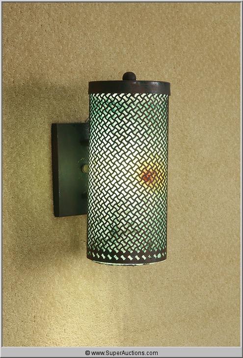 Original 2009 "Powder Blue" Long Aged Mesh Wall Sconce with Green Filter which was used as a Movie Prop and Co-starred the late "Patrick Swayze" in his last performance. #2026683