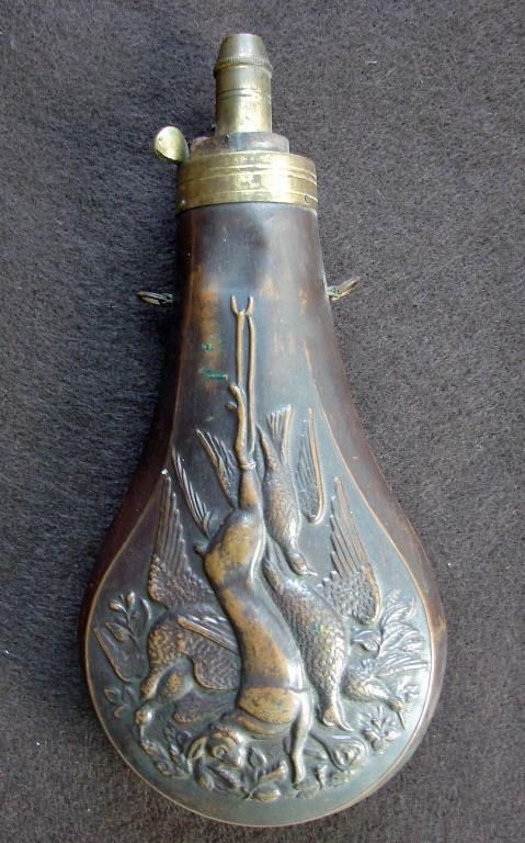 Powder Flask depicting Captured Game Scene