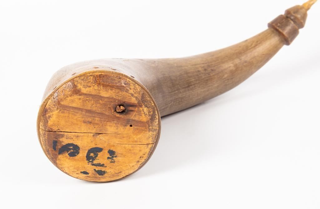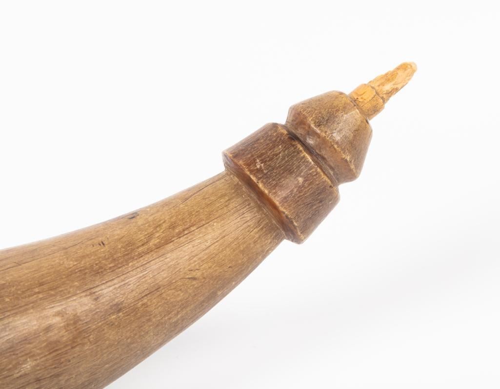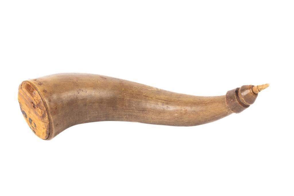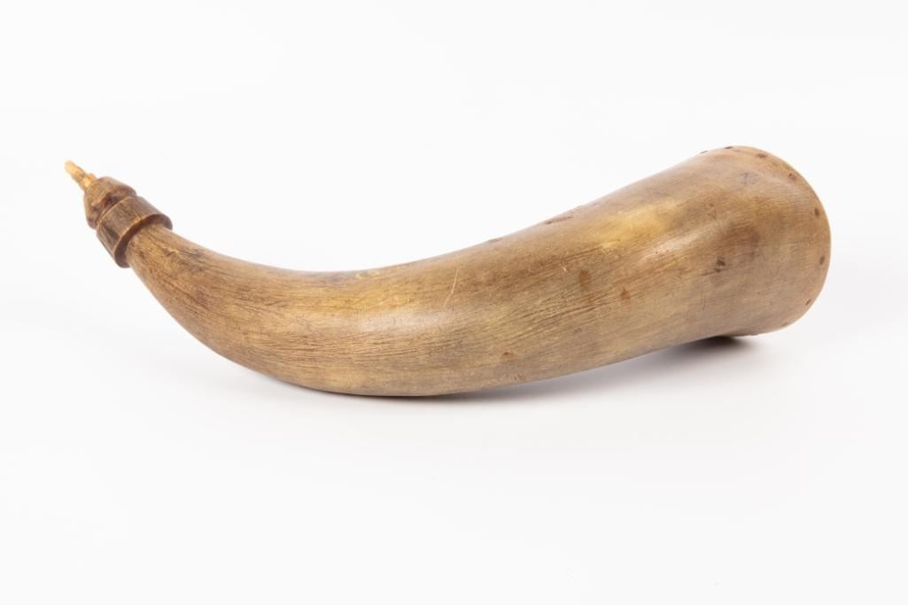 12" long. Includes tag which reads: Powder horn belonged to Chief Joseph, who traded it to Grandfather Kramer for milk as he went through the Bitterroot on his way to the Big Hole where the Battle was fought-1877 with General Gibbons soldiers.