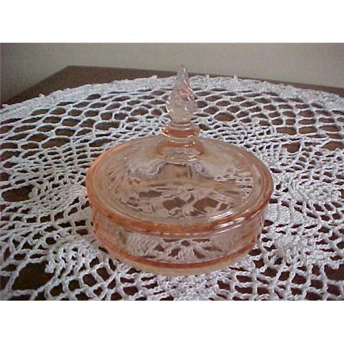 <tr><td><font size="2" face="Arial, Helvetica, sans-serif"><strong><font color="#000033">Title:</font></strong>Powder Jar, depression, pink</font></td></tr>