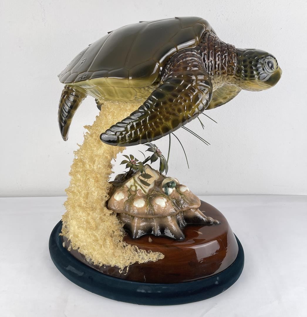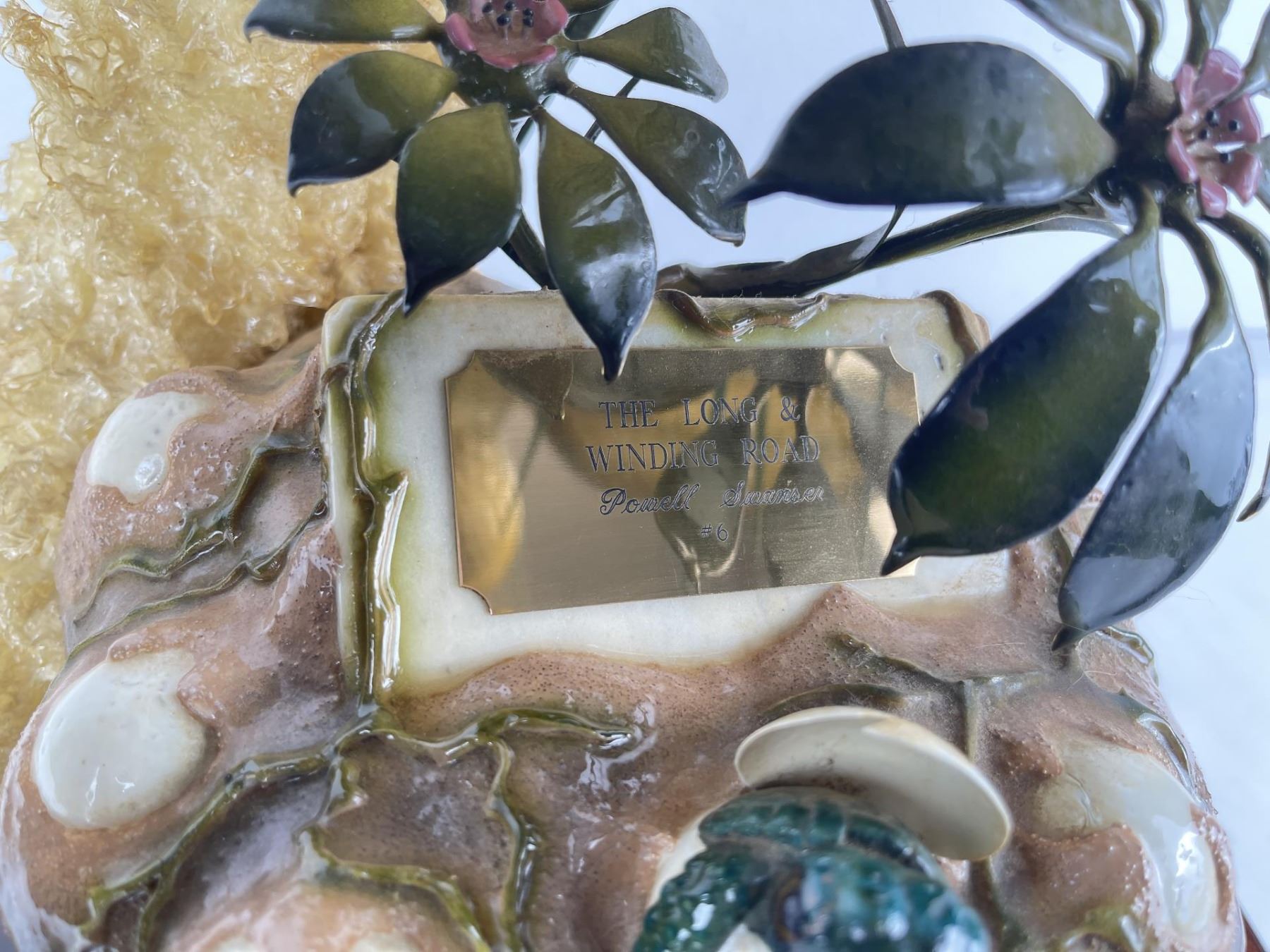 Title of the work is The Long and Winding Road. 24" tall, 24" long, 15.5" wide including base. Item will be crated and delivered by our carrier or via Fedex Freight. Local pickup is also an option. The carving retailed at over $7500 years ago from the artist. POWELL SWANSER is a self taught artist, originally from a log cabin homestead, 52 miles down into the rough, Missouri River Breaks of Eastern Montana and from a long line of pioneers and trailblazers. He now lives with his wife Tazun in the Rocky Mountains near Missoula, Montana in Big Sky Country. Swanser's paintings, sculptures and hand made blades are owned by the rich and famous. His work is world renowned. Swanser is a relative of the great mountain man, John Colter, hunter, guide and "sign talker" for the Lewis and Clark Expedition. "We must prepare ourselves for great suffering", were the words of the brave Shoshone girl Sacajawea, the only woman of the Expedition. "The Hard Way of the Long Knives to the Salt Water of the Setting Sun"...had begun. Out front on horseback was John Colter with his 54 calibur flintlock and his feared and coveted blades. His smaller knife, the "Wolffang" was strapped down to his snakeboot. His tomahawk was packed on his belt along with his big blade, the "Grizzly Chisel". The Indians called these weapons the "COURAGE BLADES". John Colter's "likeness" was to be enshrined at Mt. Rushmore but no image of him could ever be found. He was replaced by Theodore Roosevelt. Powell Swanser is currently in the process of writing a series of books on Colter, the mountain man who discovered and mapped Wyoming's Sunlight Basin, the Teton Mountains and the geysers of Yellowstone...and helped to lead Lewis and Clark to the Pacific.