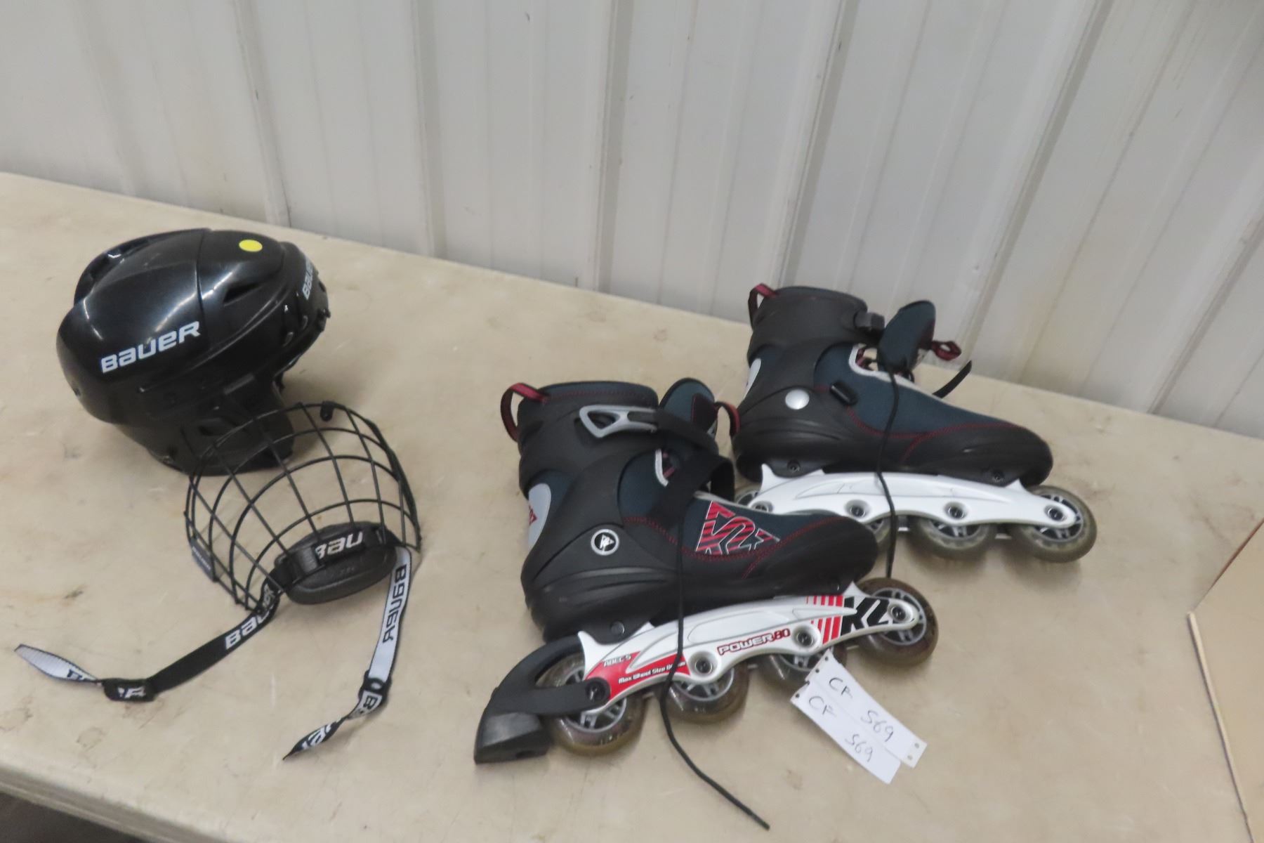 Power 80 Size 10 Roller Blades, Bauer Hockey Helmet with Mask