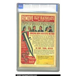 Power Comics #1 (Holyoke Publications, 1944) CGC VF 8.0 White pages. Running only four issues, Power comics hold a dear place in collectors' hearts, thanks to a group of fantastic covers that run the gamut of action, psychedelia, and war. L. B. Cole's crazy, colorful background of buildings, peppered with a myriad of colors, make this an outstanding cover. When it came to the color palette, Cole was second to none. This copy has a beautiful appearance, and is not marred by any outstanding defects other than light spine wear. Overstreet 2002 VF 8.0 value = $925. Important notice: We expect to be auctioning lots at the rate of 200-250 per hour. Sometimes eBay Premier live bid software cannot keep up with that pace, so we strongly recommend that you place a realistic proxy bid now as insurance to avoid disappointment. Also please note that all Heritage/CAA lots purchased through eBay Premier carry a 20% Buyer's Premium. Please make sure you read the Terms and Conditions.