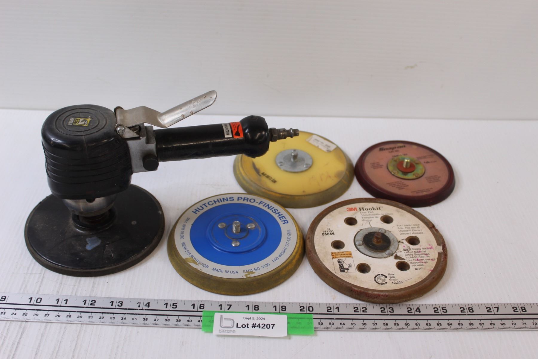 Power Fist Air Orbital Sander & (4) Sanding Pads (Hook In Loop & Stick It)