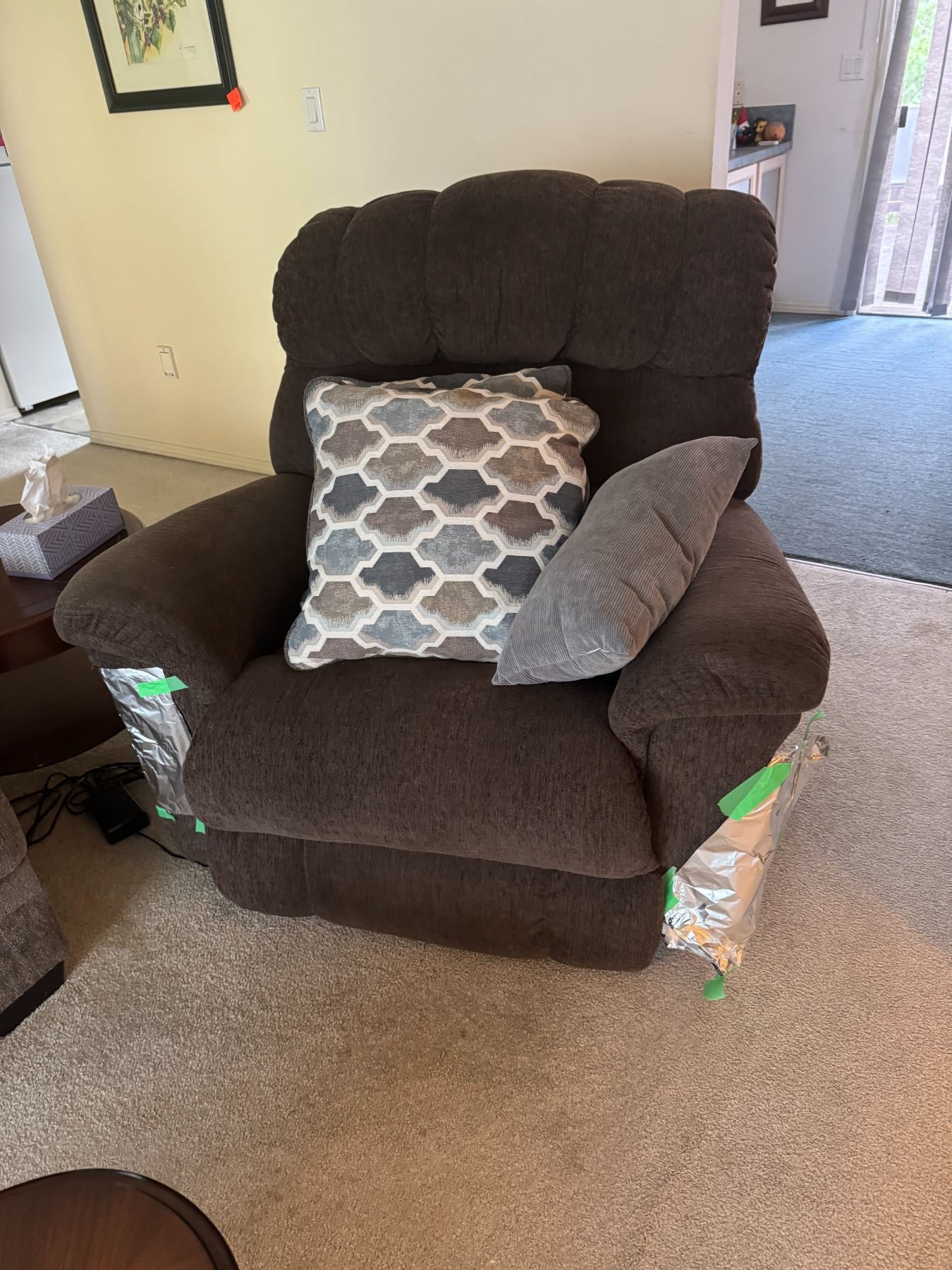 Power chair tinfoil is to avoid cat scratches