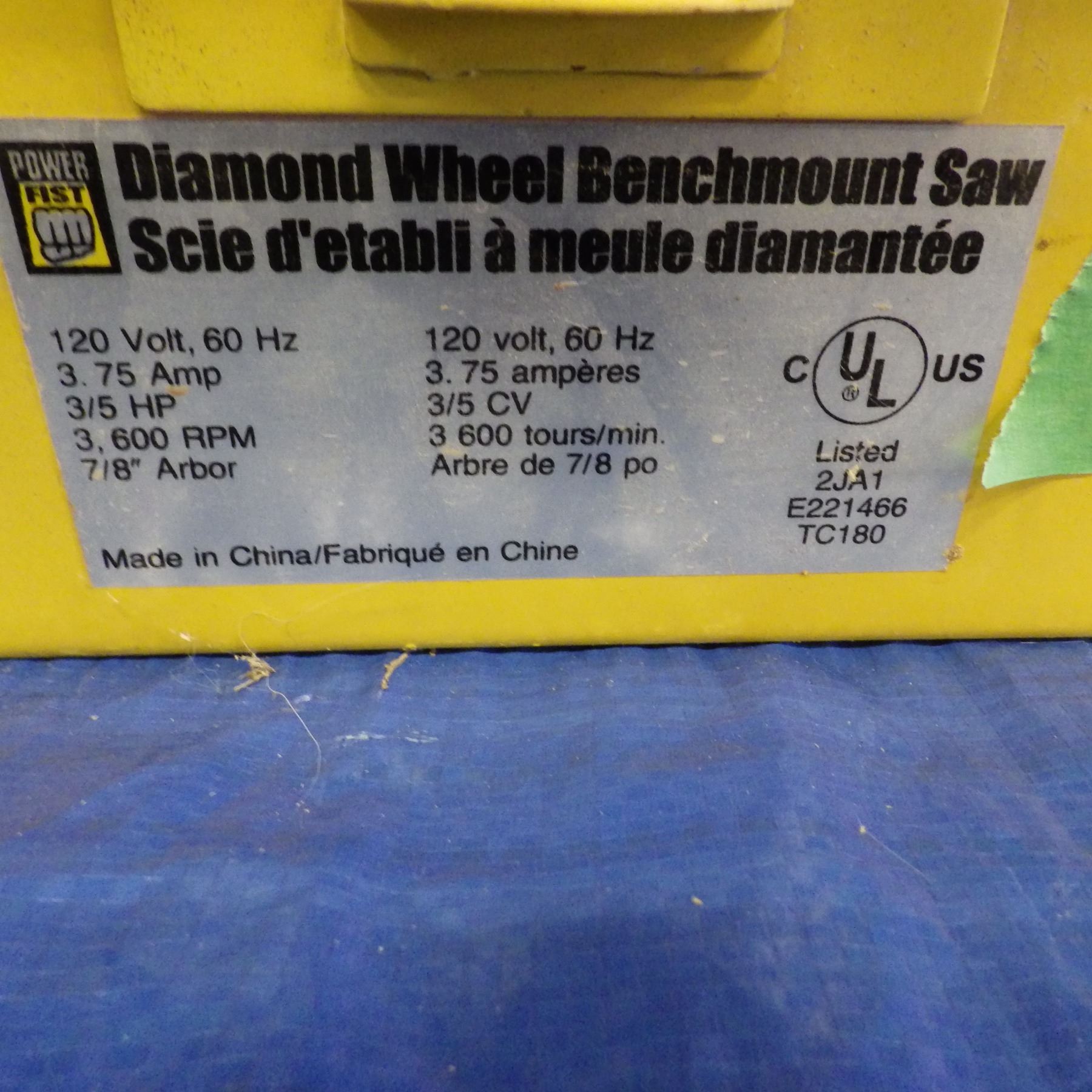 Power fist diamond wheel bench mount saw