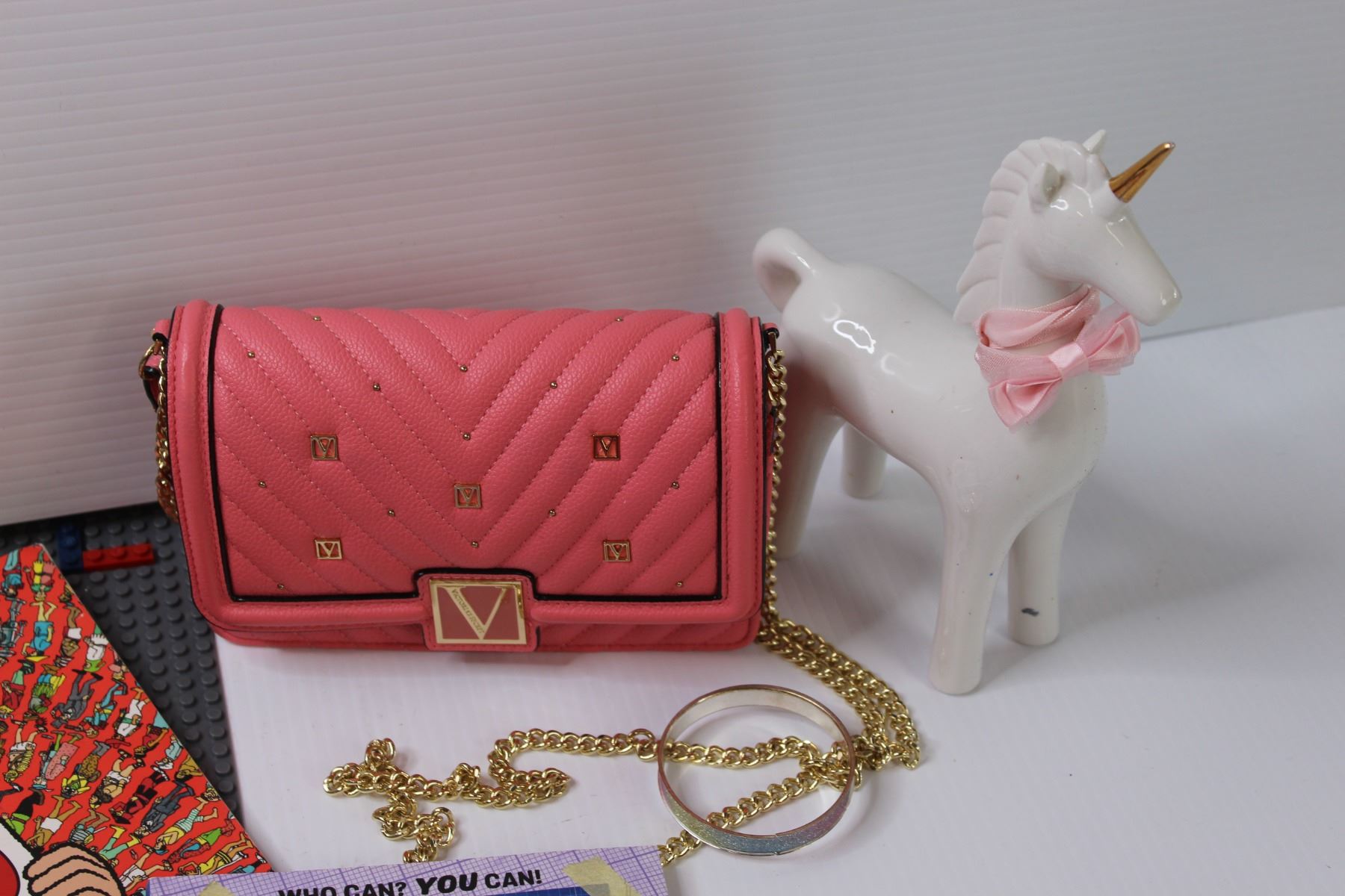 Powerade Water Bottle, Nightlight, Where's Waldo, Lego Build-It Square, Victoria's Secret Purse, Unicorn Decor, Maker Comics Science Book, (3) Display Spoons