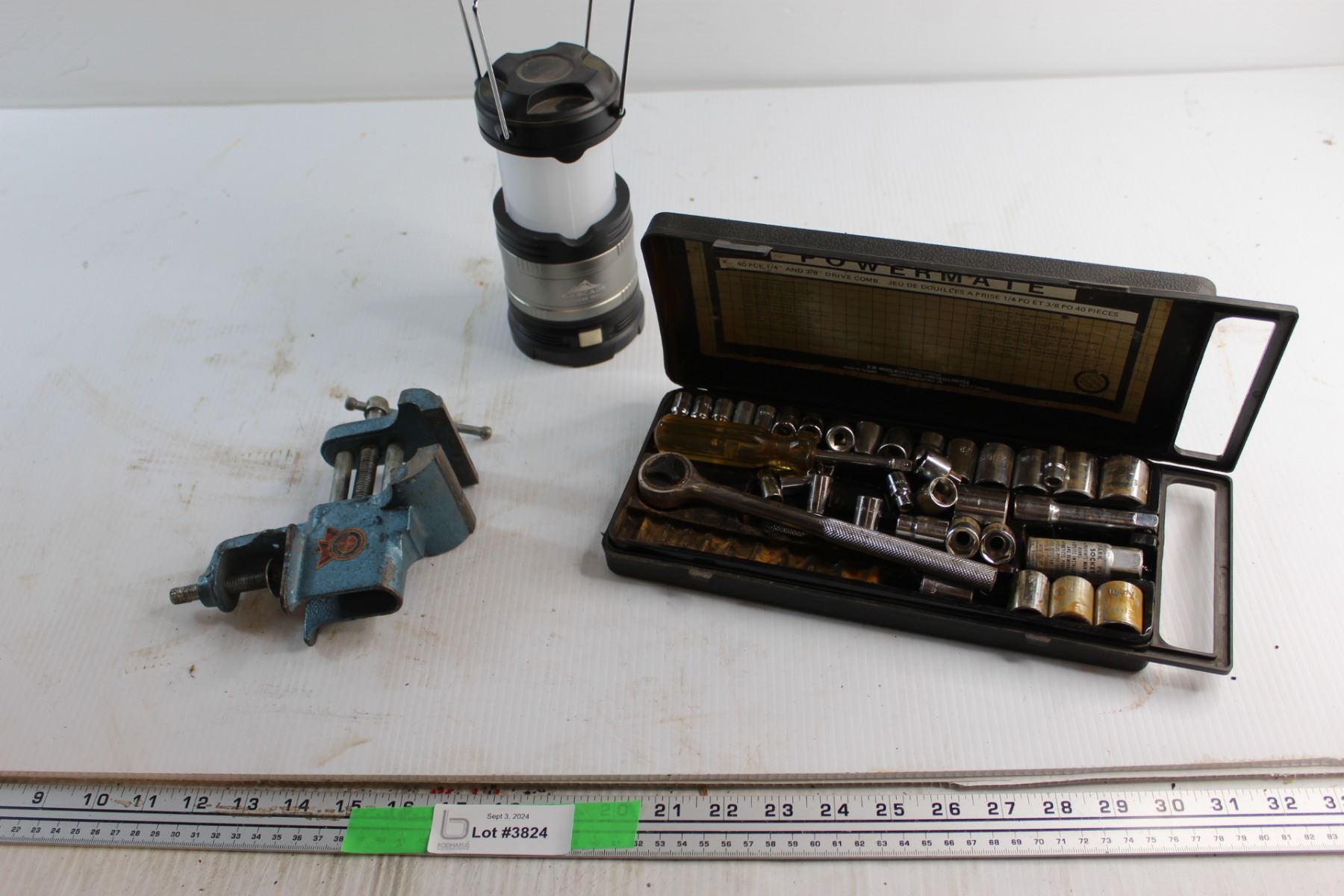 Powermate Metric Socket Set, Cascade Camp Lamp and Vise 2.5''