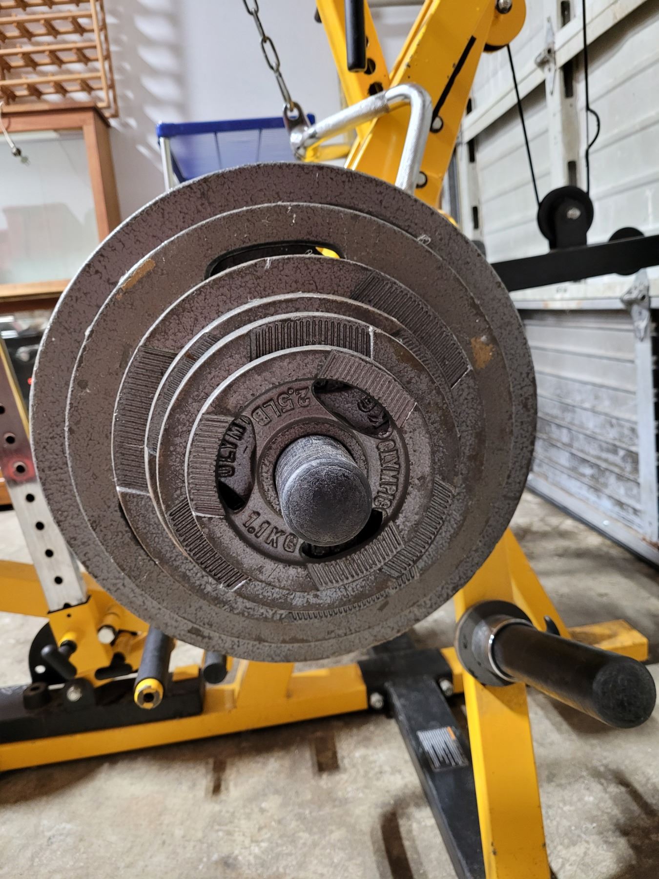 Includes 2 x 45lbs, 2 x 25lbs, 2 x 10lbs, 4 x 5lbs, 2 x 2.5lbs