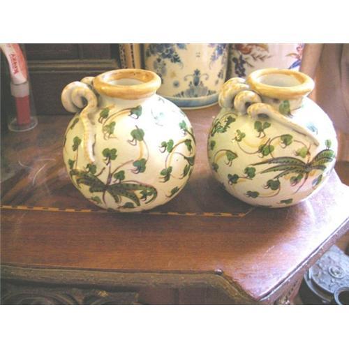 We offer a pair of splendid fayence mid-18th century pots that are beautifuly decorated with various designs, including plats and flowers