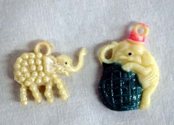 Pr 1940's Cracker Jack Prizes, both are elephants and made of hard plastic, .75''D