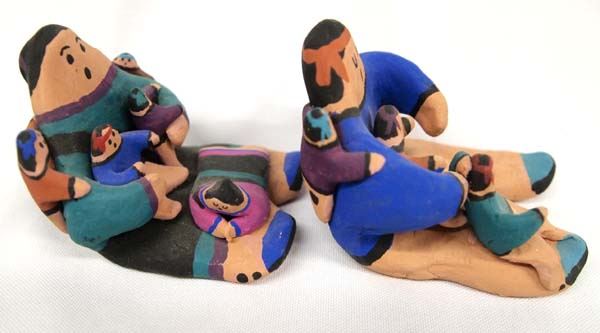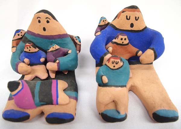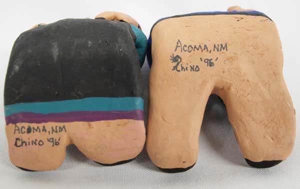 Pr. 1996 Native American Acoma Storyteller Pottery Dolls by Chino, largest measures 3''H x 2.5''W x 3''Deep, both are signed on bottom by artist