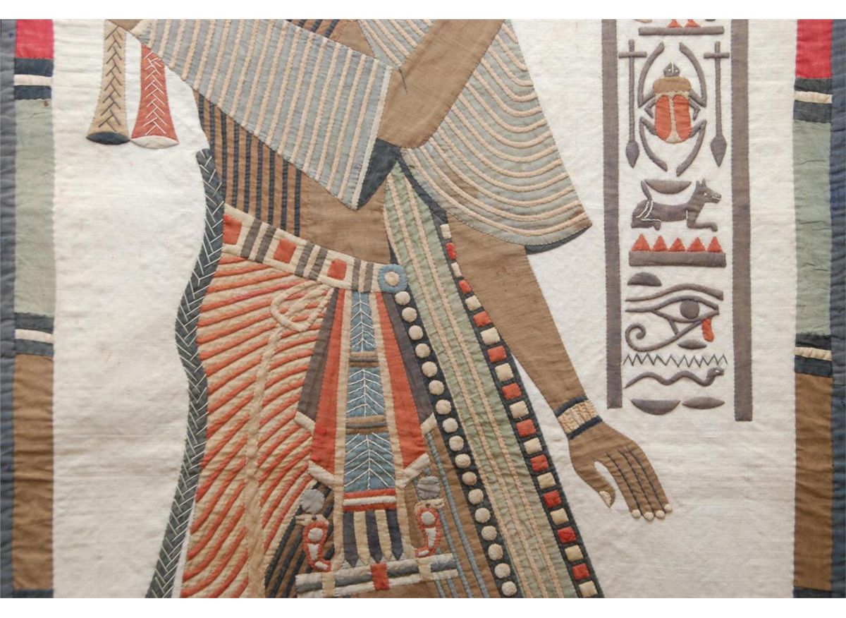 A pair of Art Deco era Egyptian revival portiere tapestries. Each finely woven to depict a female and male gods or king & queen. Probably French. Early 20th century. Measures approx. 77" height x 28" width (195.5cm x 71.1cm).