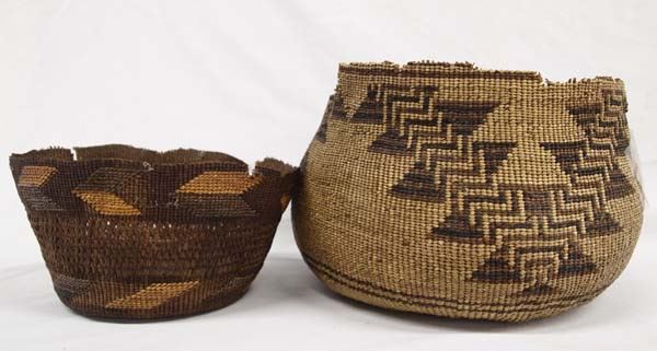 Pr Antique Native American Tlingit Baskets, largest measures 7'' x 8'', both baskets have damage