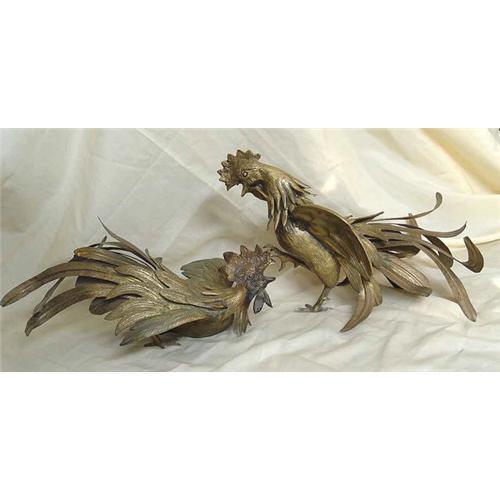 <tr><td><font size="2" face="Arial, Helvetica, sans-serif"><strong><font color="#000033">Condition:</font></strong>Restoration to the toe of one of the roosters, otherwise excellent fighting condition.</font></td></tr>