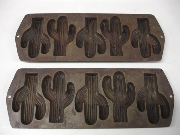 2 Cast Iron Corn Stick Molds in Shape of Cactus. Each is 15.5'' long. SHI $20.