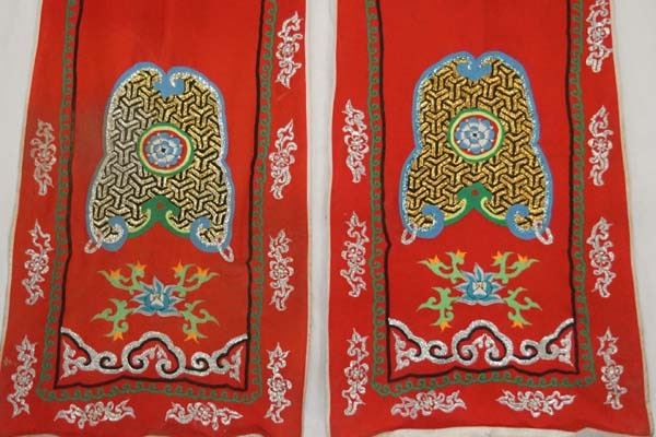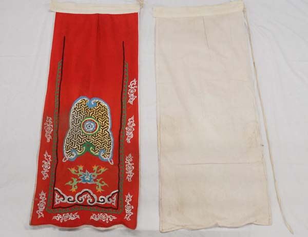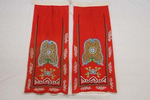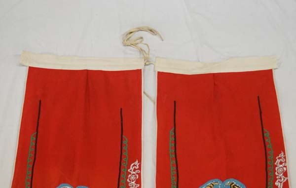 Pr Chinese Silk Holiday Banner Flags, measures 18''W x 40''L, embroidered with silver and gold thread, cotton liner, these are separate front and back panels