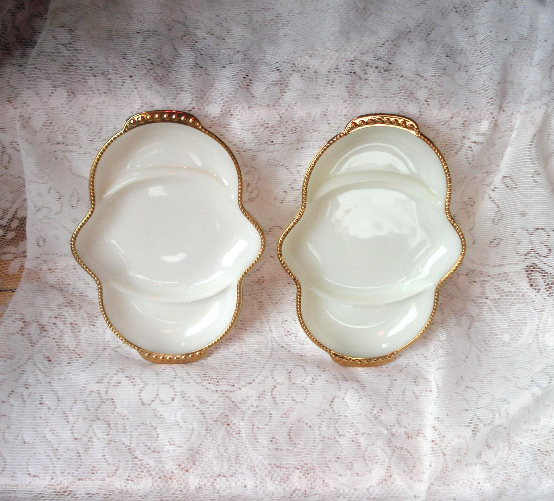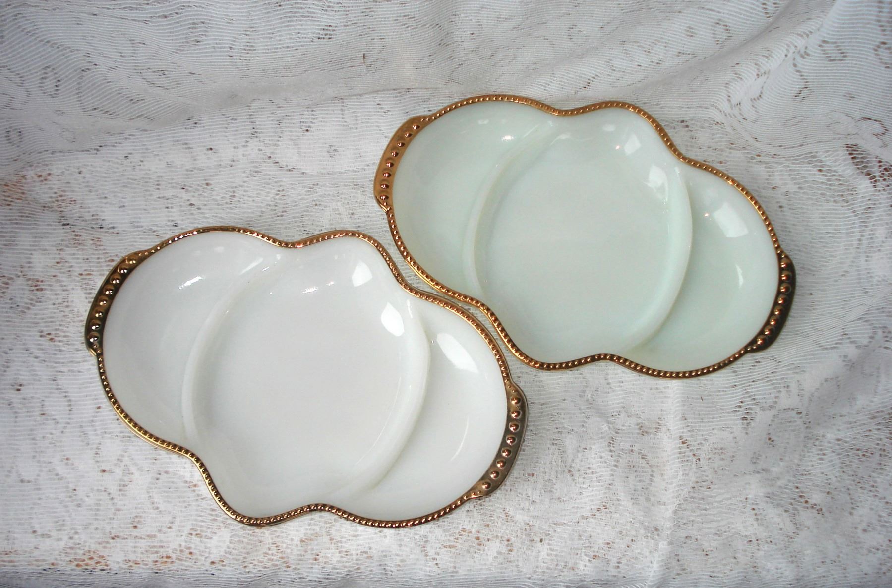 Pr Gold Trimmed Fire King Serving Dishes