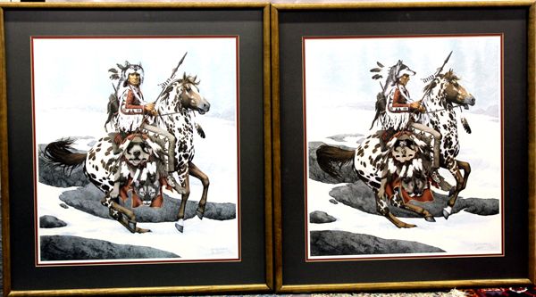 From the Nick and Suzanne Nicholas Collection we have this Pr of "Guardian Spirits" Framed, Matted, & Numbered Signed Prints by Bev Doolittle. Printed 1987. Both prints Measures 22''H x 19.5''W. Both Prints are number 10799/12328.
