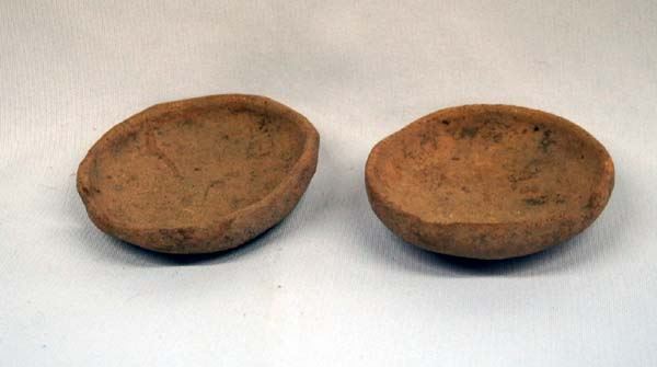 Pr Historic Native American Gila Miniature Child's Bowls, measure 1'' x 3'', each has chip in rim, Acquired in accordance with all State and Federal Regulations