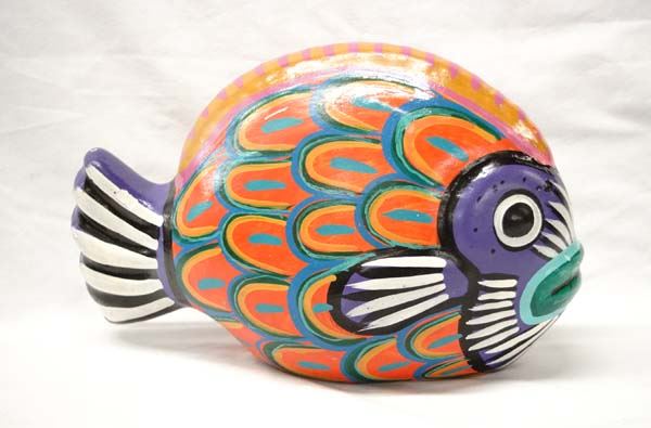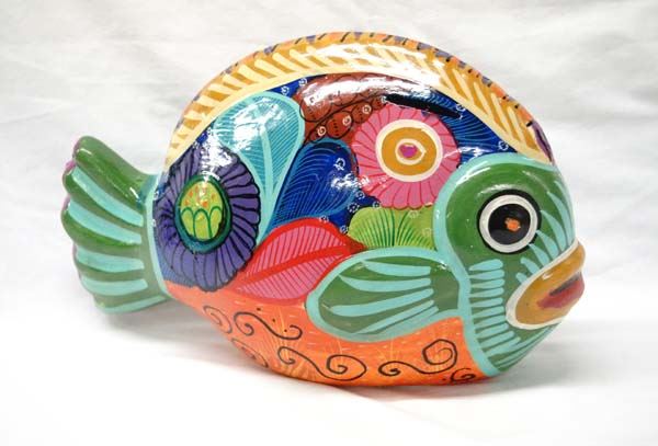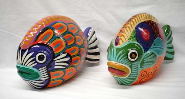 Pr Mexican Pottery Fish Banks, measures 8'' x 13'', vibrantly painted