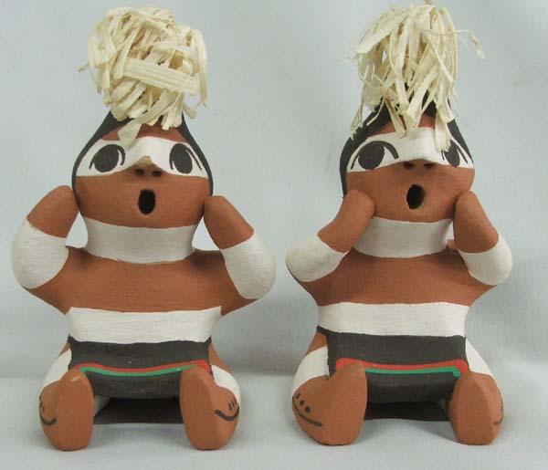 Pr Native American Koshare Clown Pottery By Alma. Measure approx. 4 1/4''H x 2 1/2''W. Buyers Pay Actual Shipping and Handling Charges(see terms and conditions for more information).